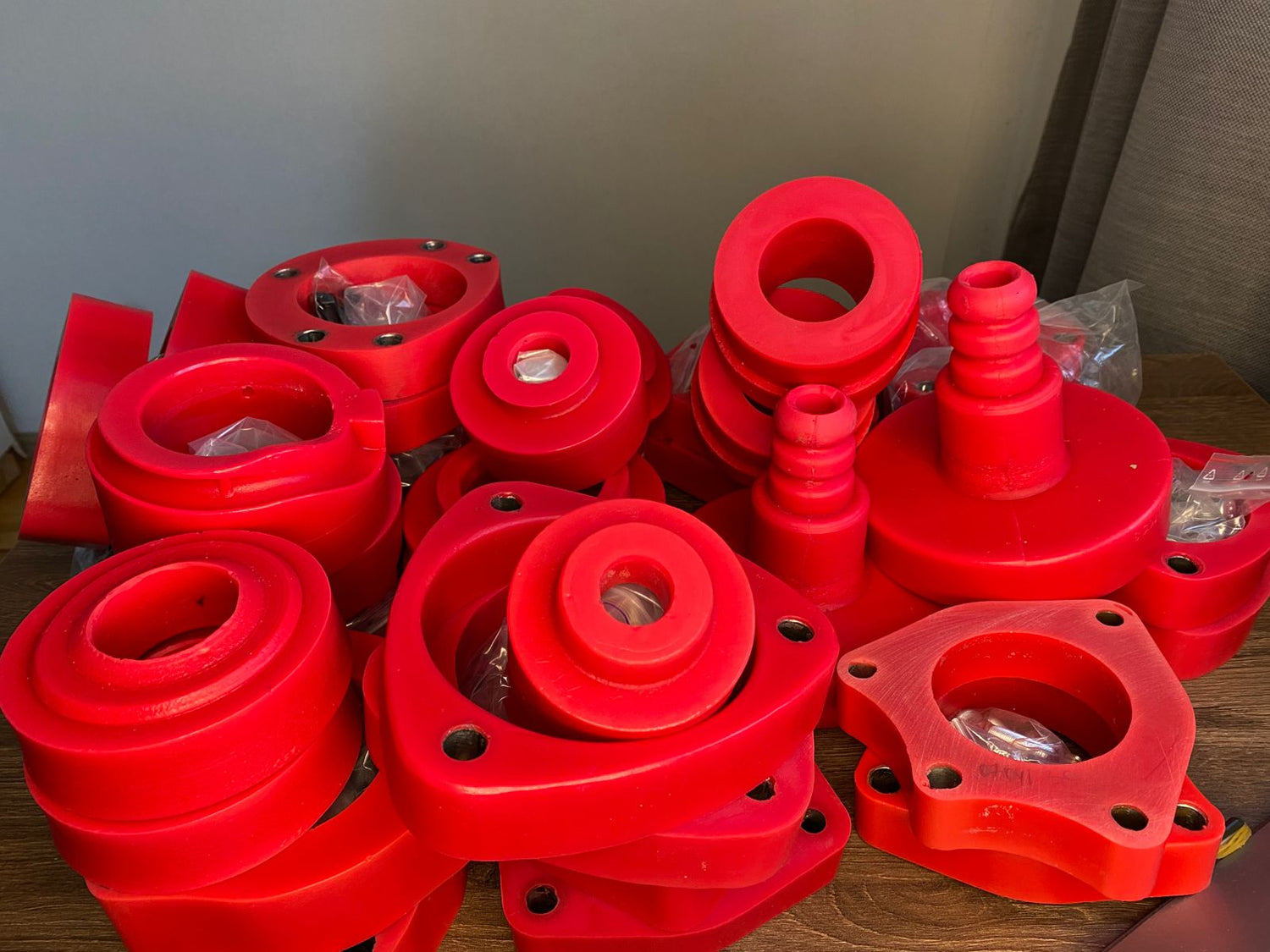 A short video of polyurethane spacers for raising the ground clearance of a VW MK6 Jetta, Golf, Tiguan