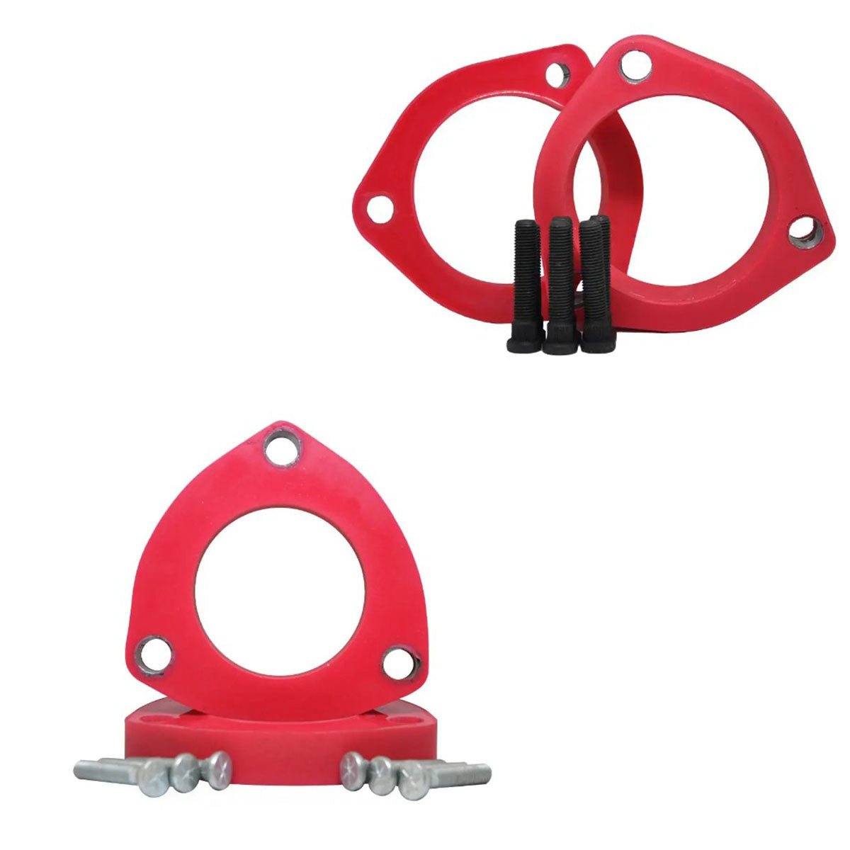 - The kit includes 4 spacers (2 Front and 2 rear) as well as mounting hardware for the front spacer.
