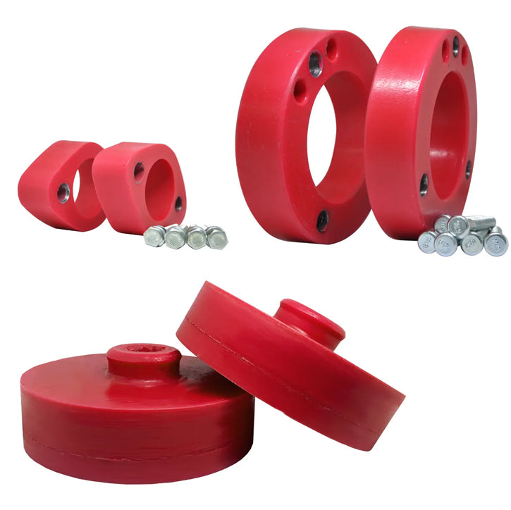 Increase your vehicle's ground clearance with this easy-to-install kit that includes two front and rear coil spacers and a fitting kit. The installation requires no disassembly of racks and retains the factory driving performance.