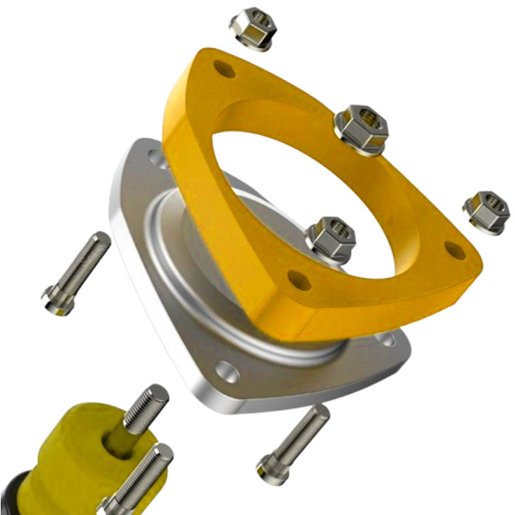 - The kit includes 4 spacers (2 front and 2 rear) as well as mounting hardware for the front spacer.