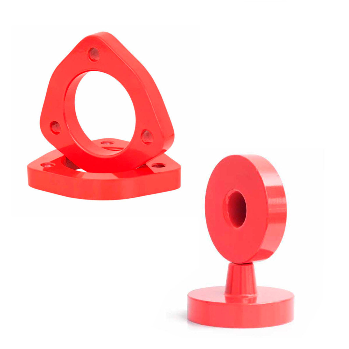 Increase your vehicle's ground clearance with this easy-to-install kit that includes two front and rear coil spacers and a fitting kit. The installation requires no disassembly of racks and retains the factory driving performance.