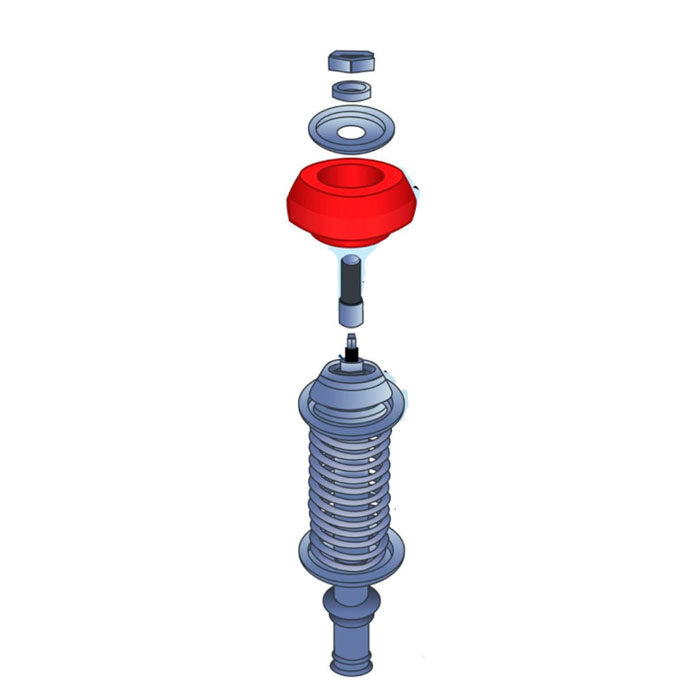 Installed on top of the shock absorber support and bolted into the factory mounts.