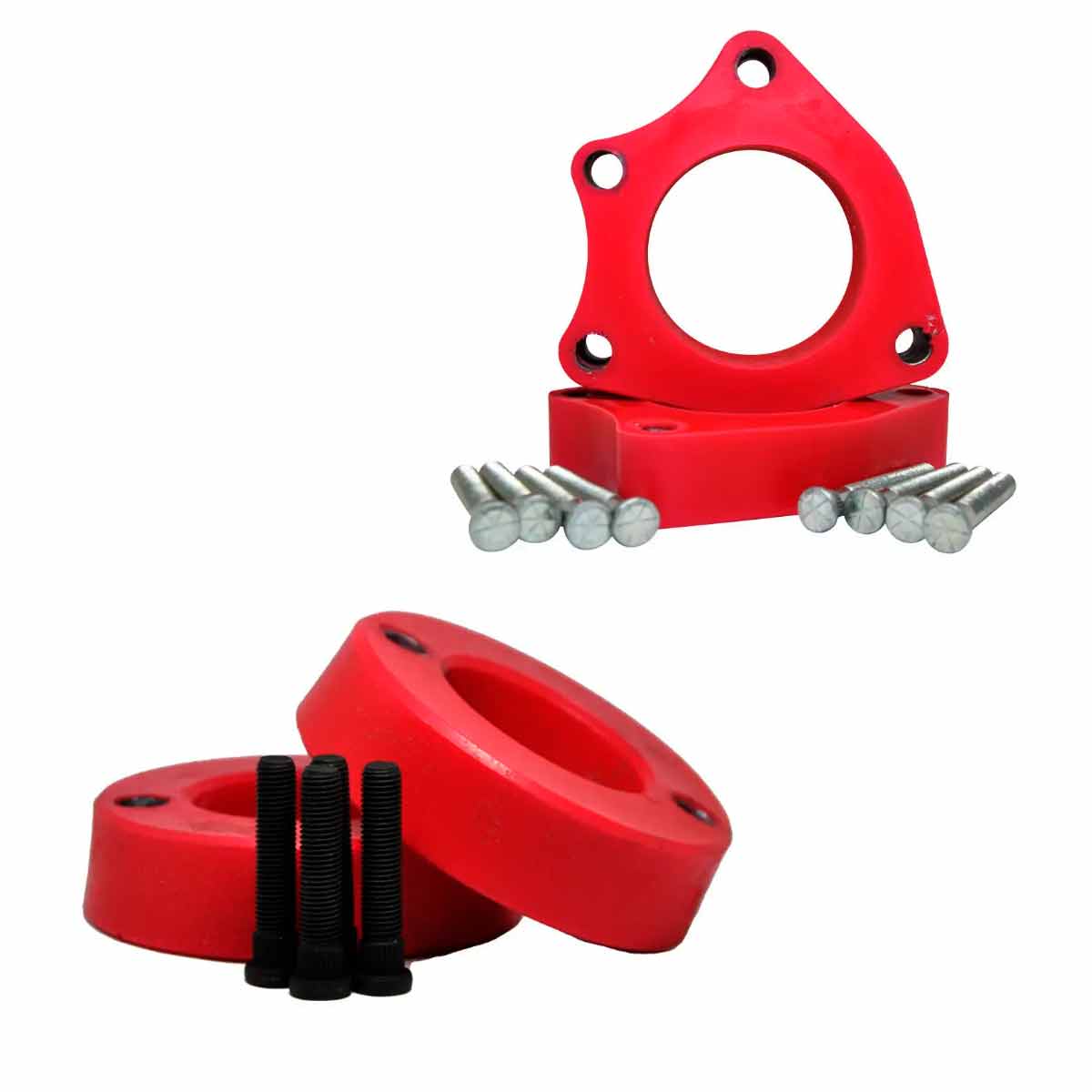 Increase your vehicle's ground clearance with this easy-to-install kit that includes two front and rear coil spacers and a fitting kit. The installation requires no disassembly of racks and retains the factory driving performance.