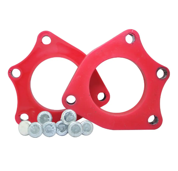 - The kit includes 4 spacers (2 front and 2 rear) as well as mounting hardware for the front spacer.