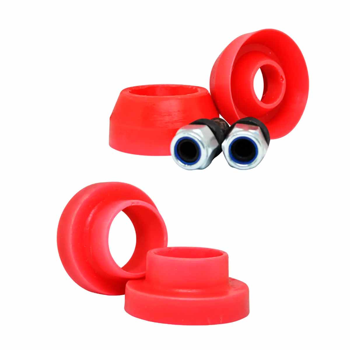 - The kit includes 4 spacers (2 front and 2 rear) as well as mounting hardware for the front spacer.